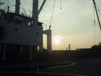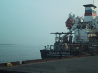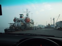 いきなり中央埠頭へ到着してます(笑)向こうに見える船はロシア船籍?