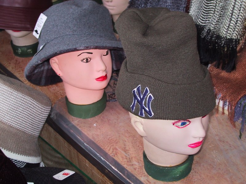出店で売られていた怪しいニューヨーク・ヤンキースの帽子とディスプレイ用のマネキン。。。
