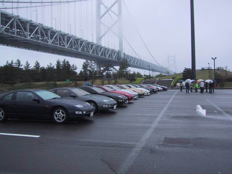 いよいよ最終日の21日は与島オフ会です。岡山県と香川県の間の瀬戸内海に浮かぶ島で、瀬戸大橋の中継地となっています。当日はあいにくの雨でしたが、トータルで30台余のZ32が集合。