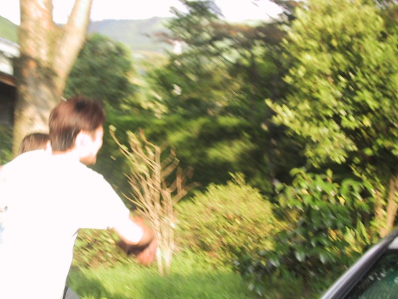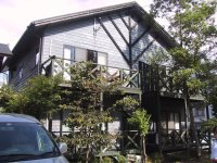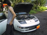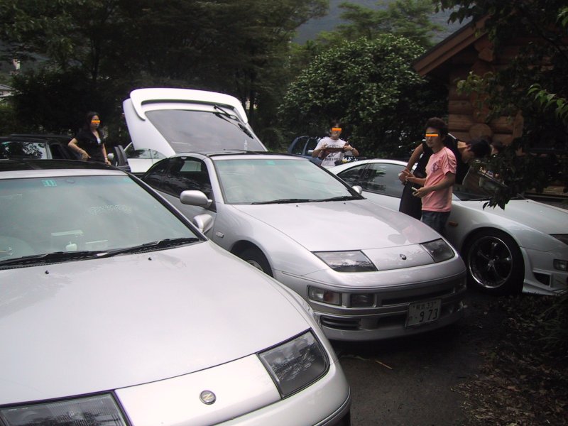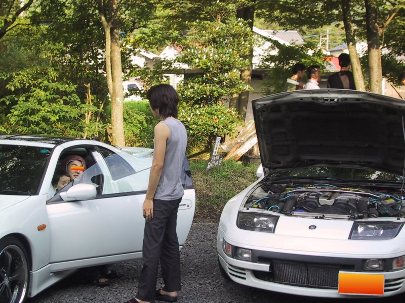 別府市内から戻り、貸別荘の駐車場へと戻ってきました。夏場なのでみんなボンネットを開けてクーリングしています(^^;)