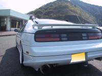後ろからもパチリ! たまたまSAに立ち寄った人たちの注目の的でした。
