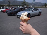 Zとソフトクリーム。 飯田高原のソフトクリームはうまい!味が濃くて最高でした。 しかし大半はお嫁ちゃんの胃袋に・・・・(u_u;)