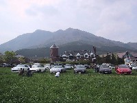 こちらは草原の上に停めてみた所です。 さわやかな風景に見えますが、草でタイヤが滑ってズリズリ(笑) みなさん四苦八苦して駐車していました。