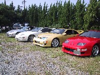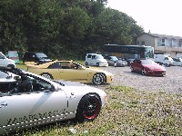 オーバーヒート気味のpochizo号はボンネット開放でクーリングです。 ぜっとん号とじゅん号はNAなので涼しい顔。