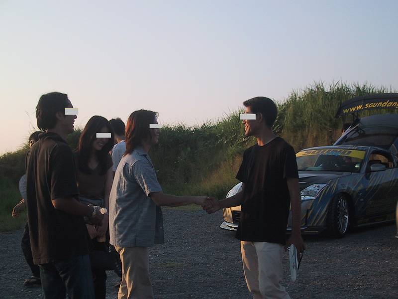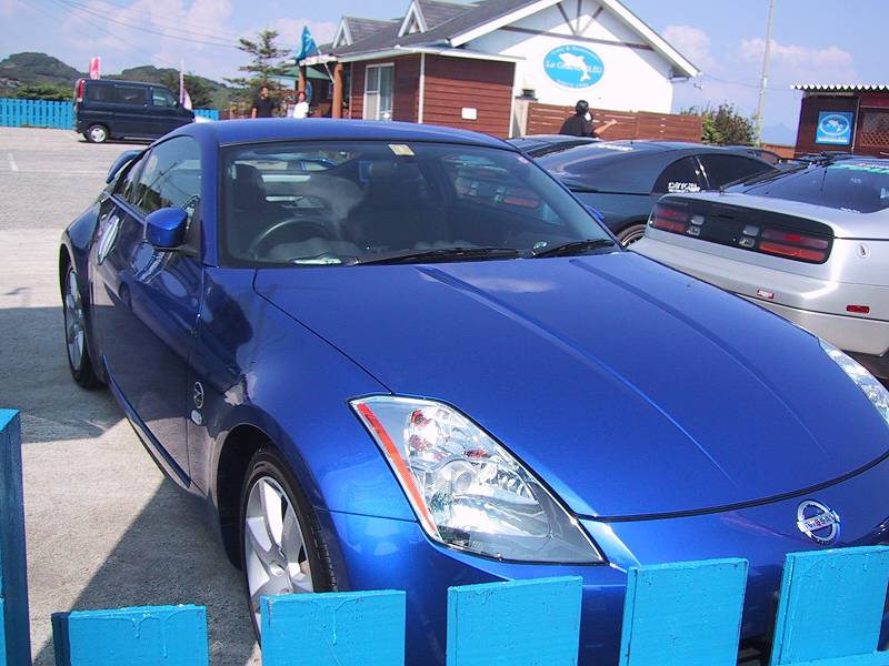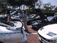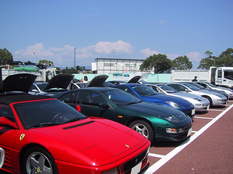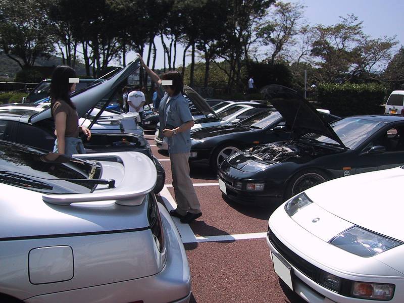 晴天の中、フェアレディZを取り囲み交流が始まりました。同じ車種に乗っている同士、うち解けるのも早いですね〜♪