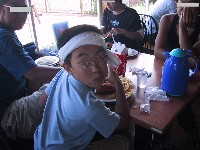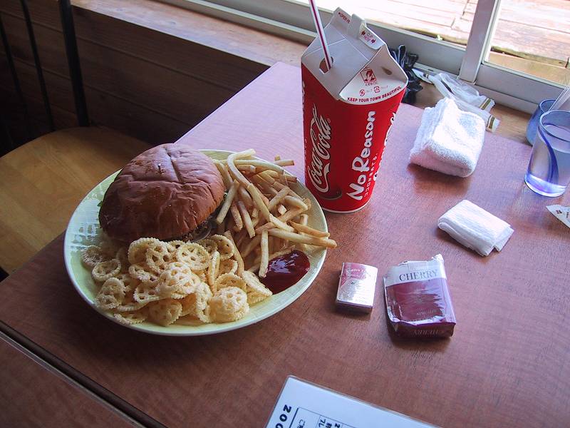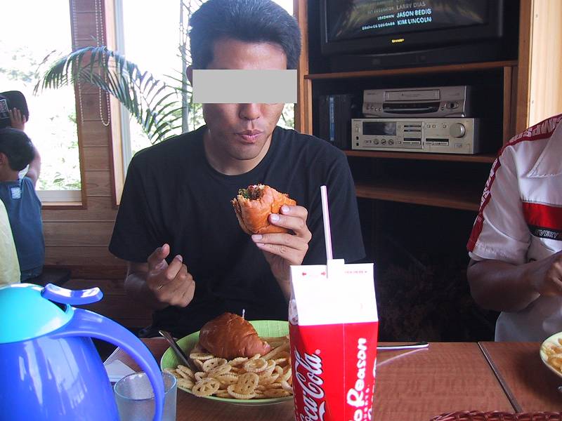 その後、近くのレストラン「グランブルー」へ立ち寄り昼食を兼ねた休憩です。 直径15cmはあろうかというビッグサイズのハンバーガーにみんな目を白黒(笑)