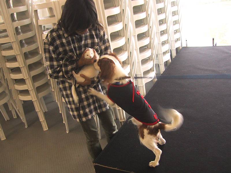 会場での一こまです。 Zおやじさん家のフェレットちゃんに遊んで欲しそうな蒼い彗星さんの「とら」くんです。