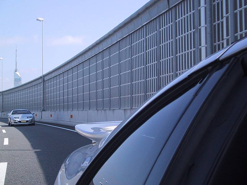 後方を走るのはしぶりにお会いしたクラ@384さんです。福岡都市高速です。