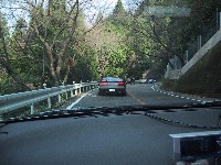 鏡山の登山道です。つづら折りのカーブを曲がって登ります。 昔はセンターラインのキャッツアイが設置されていなかったので走り屋の天国でした。