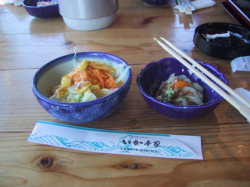 まず最初はタコのサラダと鯛のユッケです。 ユッケうまかった〜( ^o^)( ^−^)(^〜^) モグモグ♪