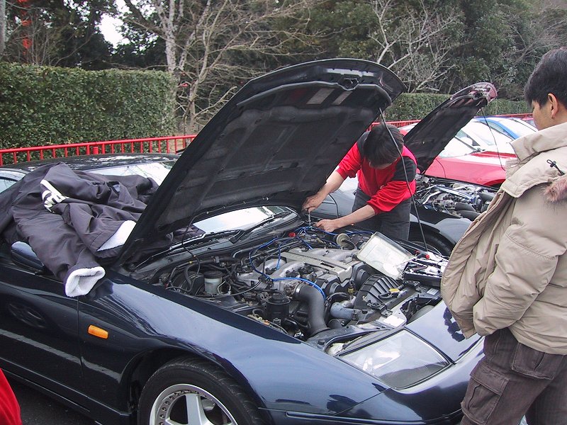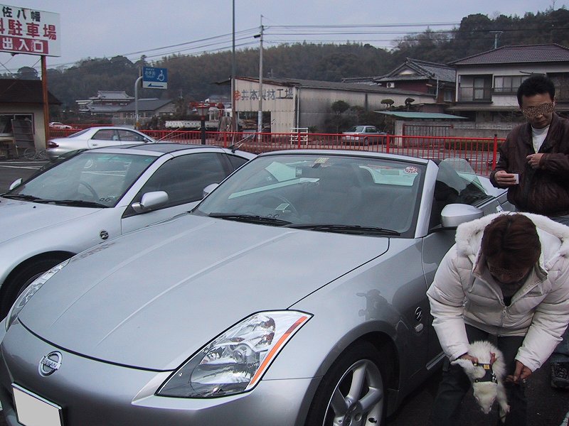 宇佐神宮へ到着後、ほどなくしてどらさんご夫婦も登場です。 (ノ゚ο゚)ノ オオオオォォォォォォ- 350ロードスターだ〜★うらやましいっす・・・ 9匹飼っておられるうち1匹を厳選して連れてきておられました。