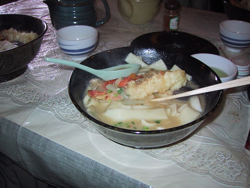 ぜっとん夫婦とBig-1さんは「神宮だご汁」を食べました。 エビの天ぷらが入って800円(税別)です。