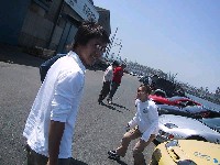 さてさて、集合場所の中央埠頭へと移動しました。 なにやらよからぬ相談をする極悪pochizo親子(≧m≦)
