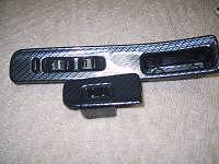 カーボン調カッティングシートでドレスアップ!第三弾! 無骨なパワーウインドウSWにも貼り付ける事にした。いままで柔らかいシートが見つからず作業を断念していたが、熱でよく伸びるタイプのシートが売られていたのでこれを使って作業してみた。 結果は良好!ひと味違った雰囲気に仕上がった。 作業時間約1時間。カッティングシート1,620円。走行距離82,400Km |