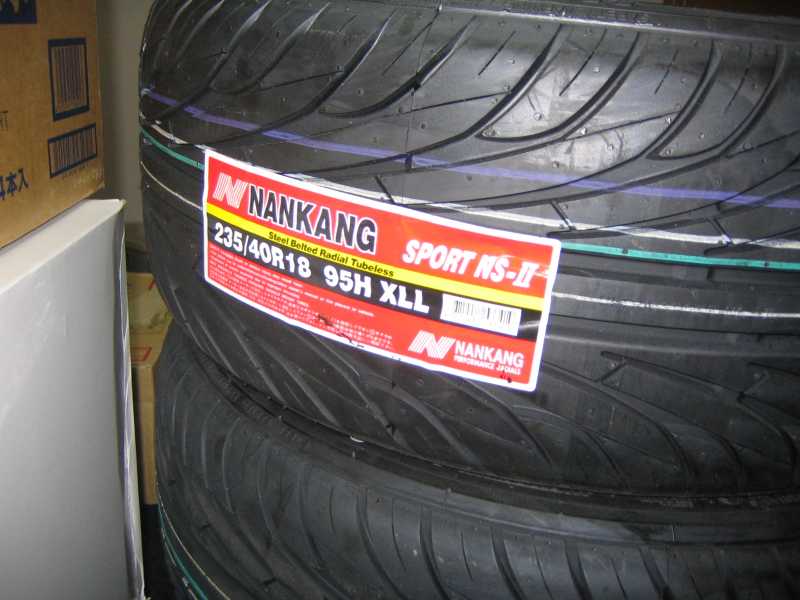 他の格安候補はいくつかありましたが、ハンコックもとりあえず除外。こちらも以前使っていましたがタイヤの面(ツラ)がいまいちなデザインだったので。スミトモタイヤがすごく気に入ったのですが、235/40R18で1本1万2千円くらい。4本だと5万近くなってしまいます。で、結局購入したのがナンカンのSPORT NS-Uというタイヤ。ネットで注文して数日で自宅に到着しました。見た感じ、国産タイヤっぽいツヤとショルダー部やリムガード部もしっかりしてそうです。