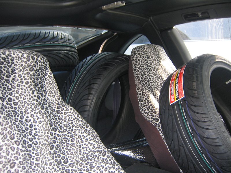 こちらは届いた新品のタイヤです。子供達が中に入って遊んでいました(^^;