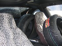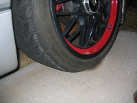 写真では潰れているようにみえません。というのもエアを入れてみたのですがどうがんばっても1Kg/cm2しか入りきれませんでした。ついでにフロントの空気圧も2Kg/cm2になっていまして、さらに内減りしたので組み替えしたのですがあまりにも溝がヤバすぎ〜〜。よし!こうなったら全輪タイヤ交換だ!
